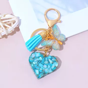 Boho Sequin Heart & Butterfly Tassel Keychain Pendant
